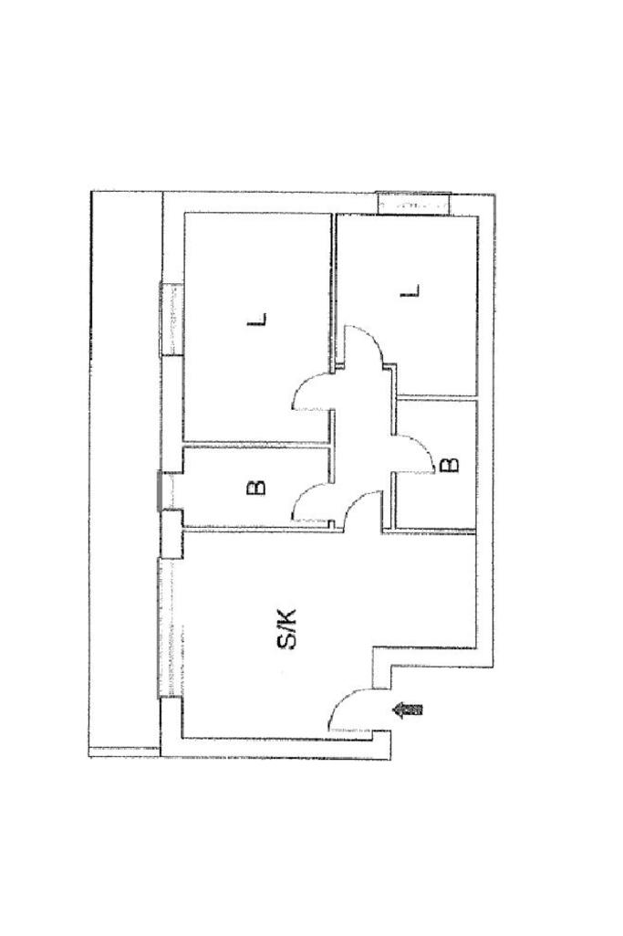 La disposizione degli ambienti è di taglio moderno con l'ingresso diretto nella zona giorno composta da soggiorno con cucina a vista, il disimpegno divide la zona notte dove è presente una camera matrimoniale, una cameretta e i doppi servizi. Quello di servizio è cieco ed è dotato di attacco per la lavatrice, quello principale è finestrato e dotato di doccia.