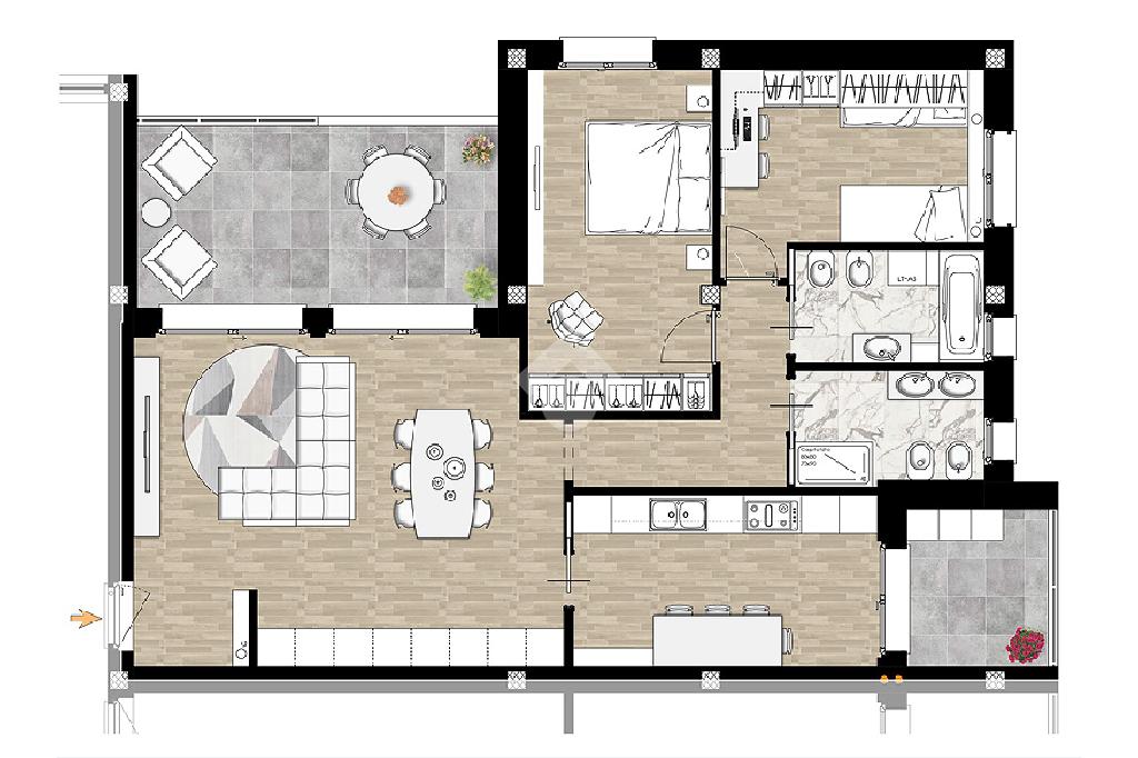 Ogni unità abitativa sarà dotata di ampi terrazzi, box privati e finiture di alto livello, con impianti di ultima generazione.