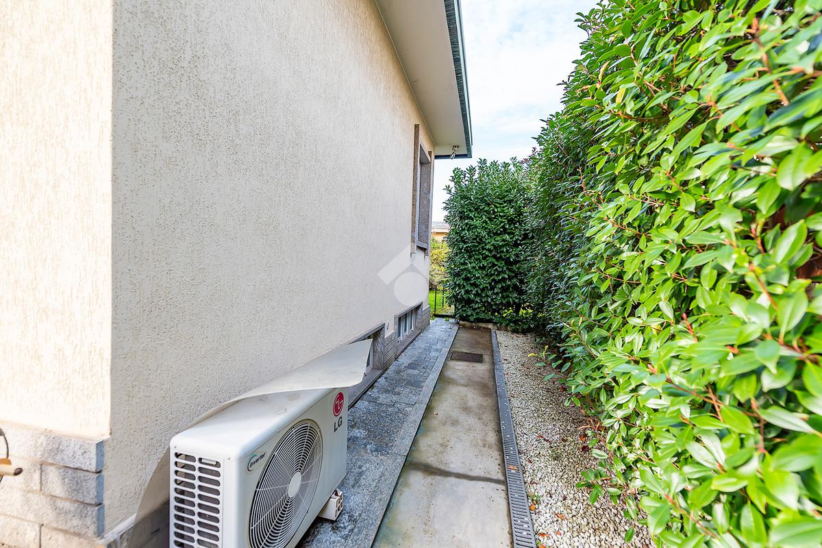 In posizione tranquilla e riservata, ma comodamente servita da scuole, bar, farmacie e principali servizi del comune di Lainate, proponiamo in vendita villa singola disposta tutta su un unico piano abitativo.