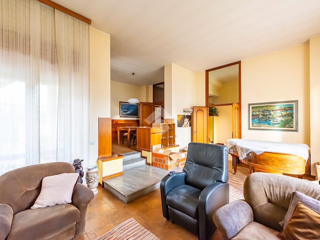 L'abitazione si compone di un luminoso soggiorno, cucina separata e abitabile, due ampie camere da letto e due bagni, ideali per garantire comfort e funzionalità alla vita quotidiana.